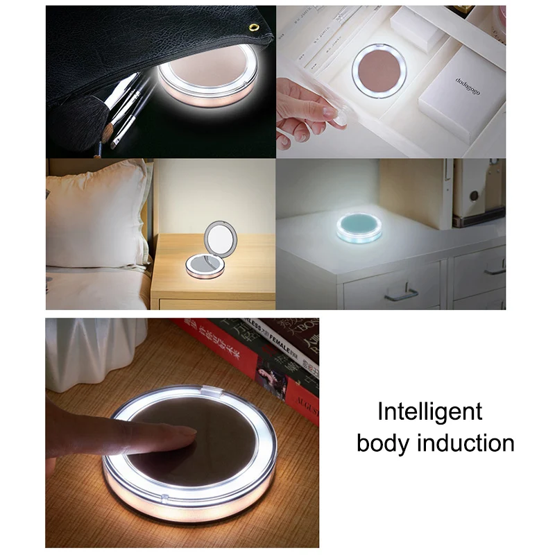 Special Offer LED Beleuchtete Mini Make Up Spiegel 3X Vergrößerungs Compact Travel Tragbare Sensing Beleuchtung Make Up Spiegel SK88 Discount 28% Today!