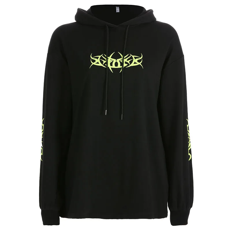 . (40% Rabatt) Kaufen Günstig Sweetown Neon Druck Übergroßen Gothic Hoodies Streetwear Sudadera Mujer Winter Kleidung Frauen Langarm Lange Hoody Sweatshirt Preise Online.