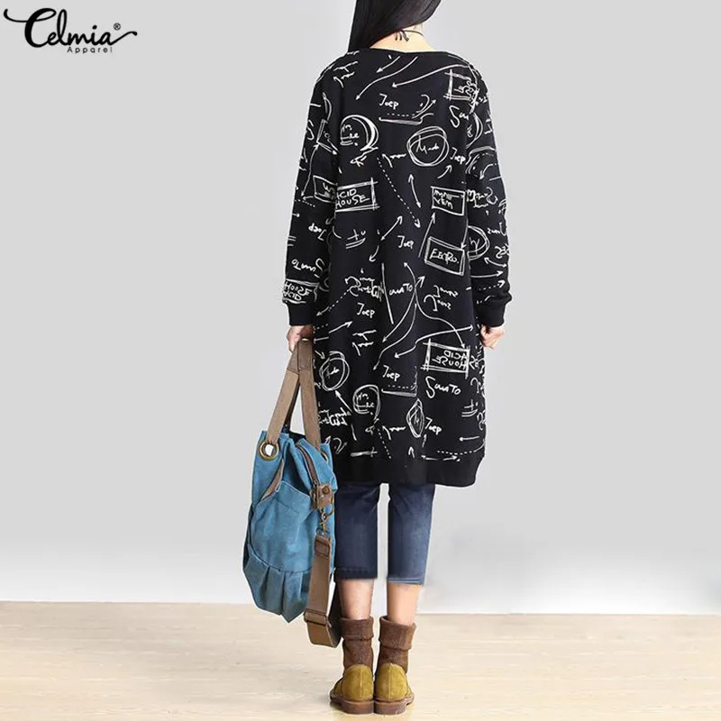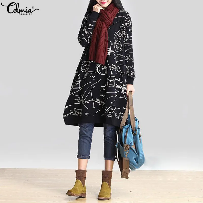 Special Offer Celmia Frauen Casual Hoodie Kleid Herbst Vintage Gedruckt Hoodies Sweatshirt Jumper Lange Top Vestidos de Festa Plus Größe S 5XL Discount 31% Today!