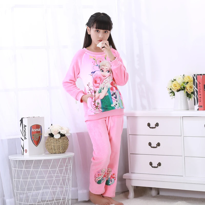 Special Offer Hot Winter Kinder Fleece Mädchen Pyjamas Warm Flanell Nachtwäsche Loungewear Korallen Fleece Kinder Pijamas Elsa Pyjama Set Homewear Discount 23% Today!