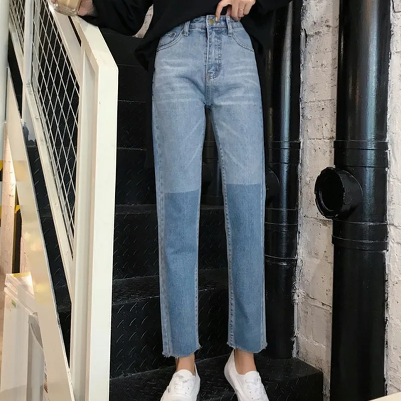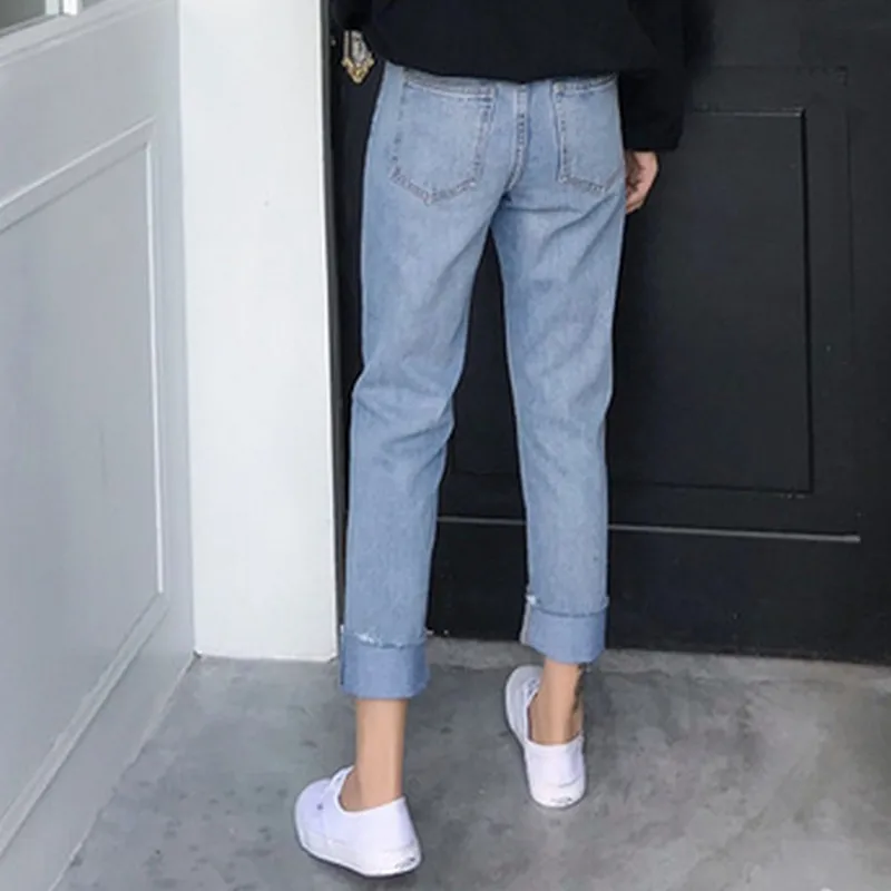 Special Offer PLAMTEE Manschetten Vintage Jeans Frauen Getäfelten Koreanische Gerade Denim Hosen High Street Lose Warme Jean Hosen Herbst Winter Discount 10% Today!