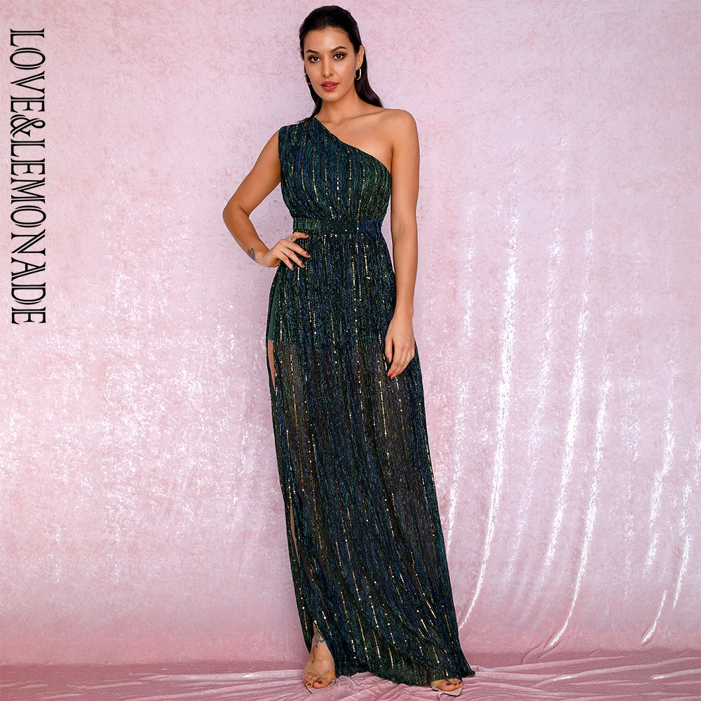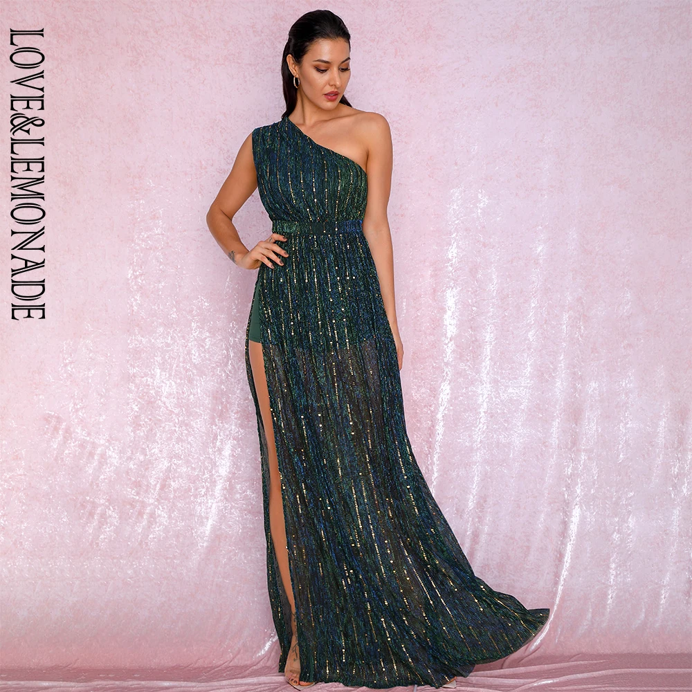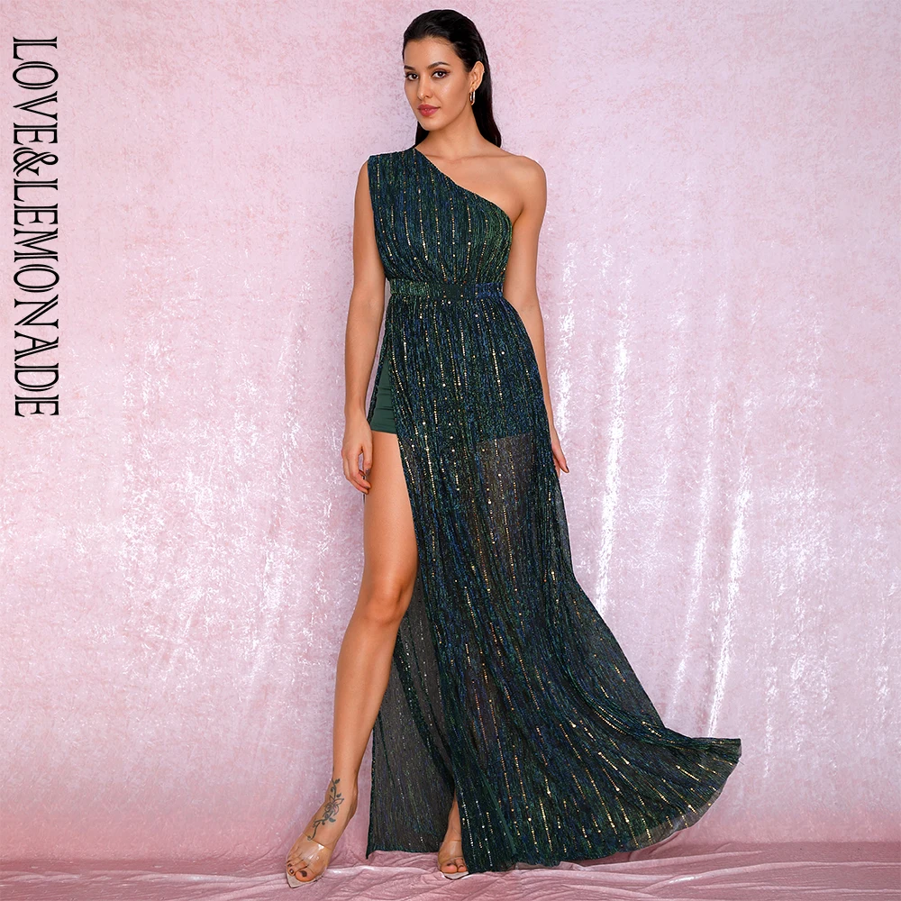 . (15% Rabatt) Billige Kaufen LIEBE LIMONADE Grün Schulter Verbund Pailletten Material Split Party Kleid LM80768A GRÜN Preise Online.