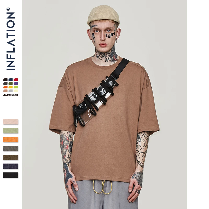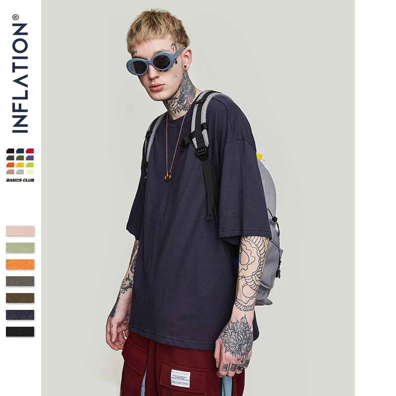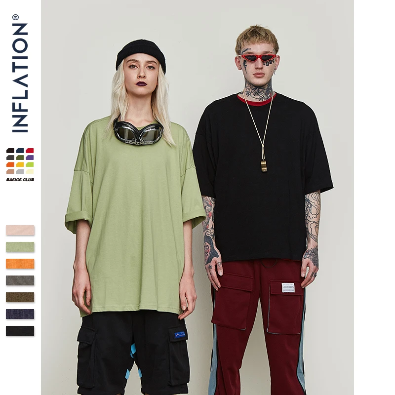 Special Offer INFLATION Sommer Neue Stil Unisex Casual Feste Elbow Länge Crew Neck Baumwolle Übergroßen Mode Hip Hop T Shirts 0057S17 Discount 50% Today!