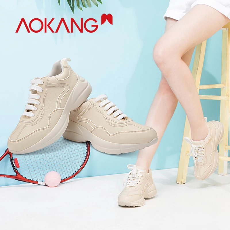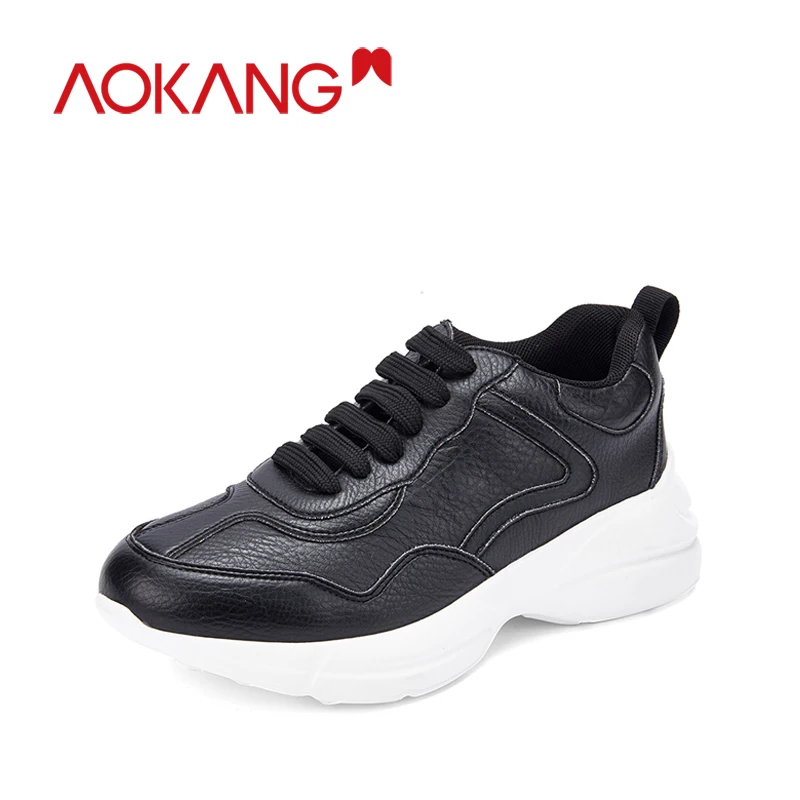Special Offer AOKANG frauen Turnschuhe Frauen Leder Plattform Casual Schuhe Lace Up Vulkanisieren Schuhe Frau Weibliche Trainer Outdoor Schuhe Discount 0% Today!