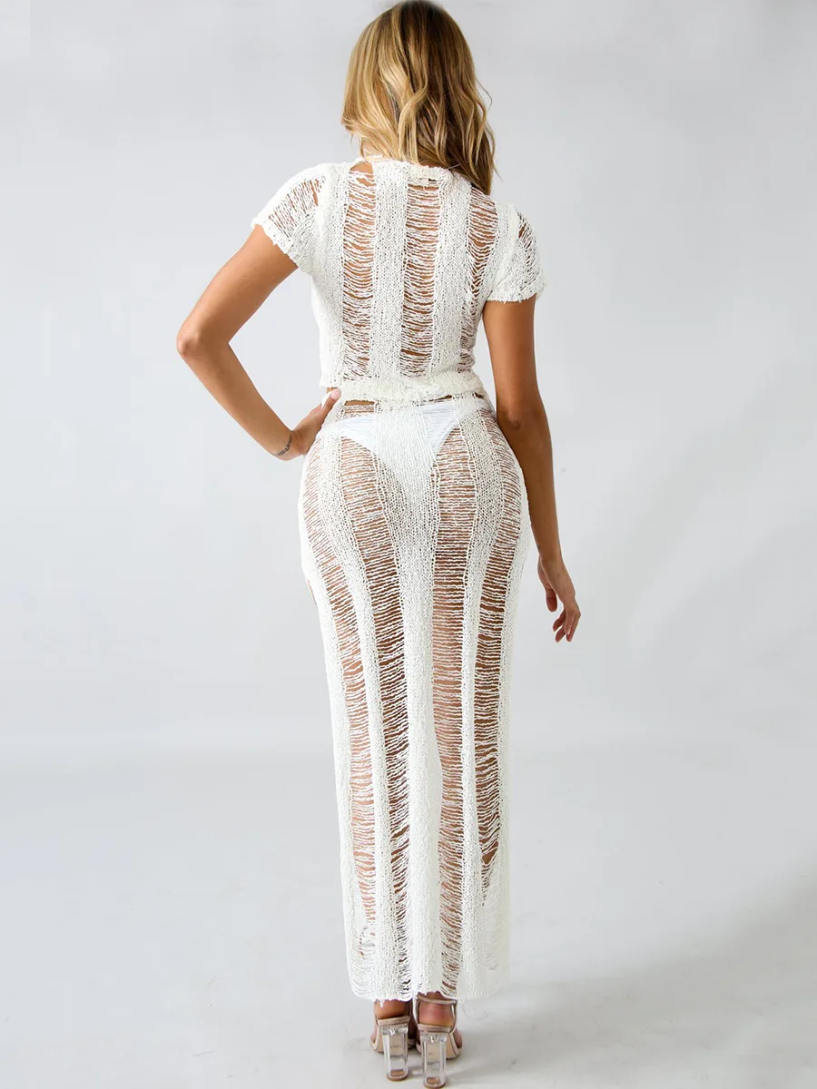 Special Offer Sommer Frauen Zwei Stück Set Weibliche Sexy Kurze Sleevel Aushöhlen Top + Femme Sexy Lange Dess Damen Nachtclub Anzüge ZSC Z019 Discount 0% Today!