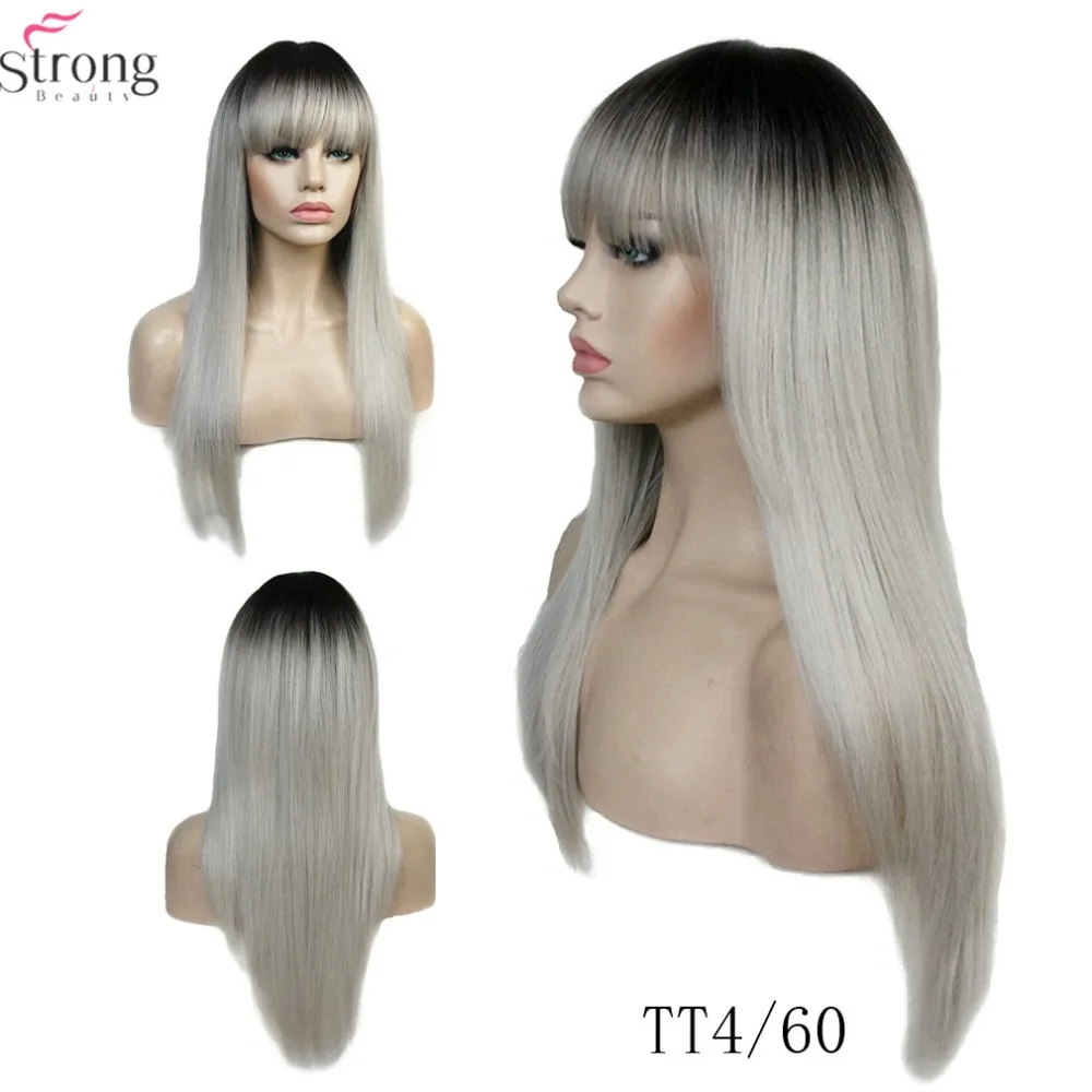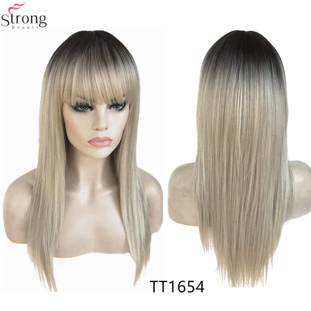 Special Offer StrongBeauty frauen Synthetische Perücken Haar Matte Ombre Lange Gerade Ordentlich Bang Stil Natura Perücke Blonde Discount 23% Today!