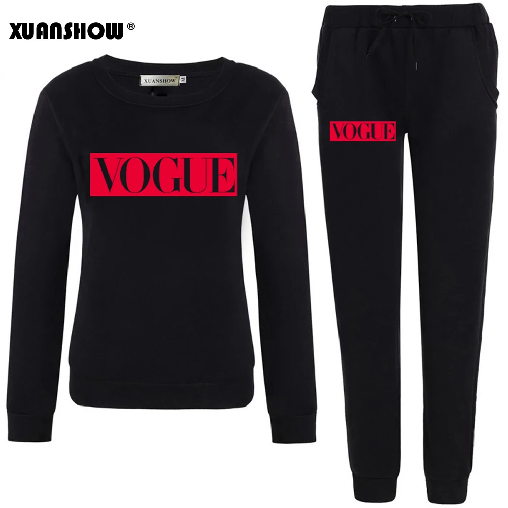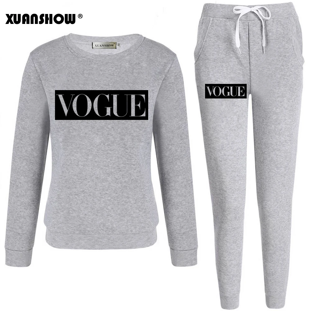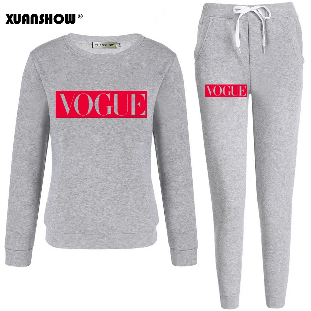 Special Offer XUANSHOW Herbst Winter Frauen Set VOGUE Brief Drucken Sweatshirt + Hosen Langarm Trainingsanzüge Zwei Stück Anzug Sportswear Outfit XXL Discount 34% Today!