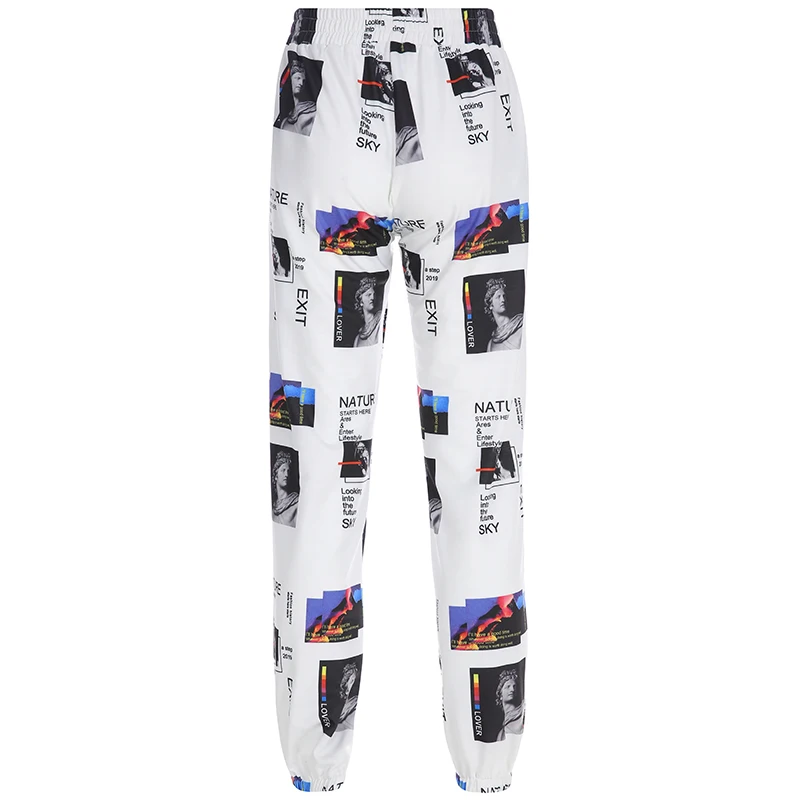 Special Offer Sweetown Gothic Streetwear Hosen Frauen Illstration 3D Drucken Hohe Taille Jogger Hosen Taschen Womens Plus Size Mode Hosen Discount 41% Today!