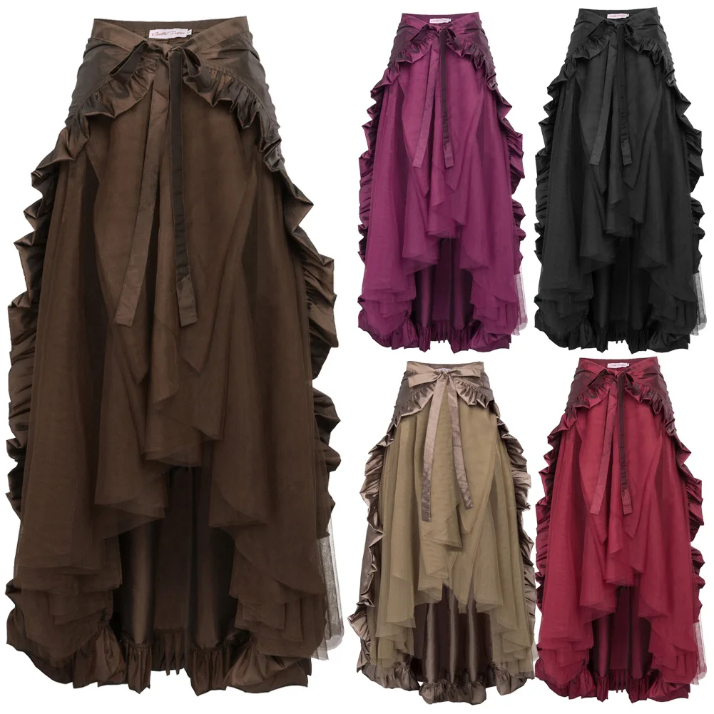 Special Offer Viktorianischen Steampunk Gothic Punk Kräuselte Treiben Lange Rock Retro Spitze up Asymmetrische lolita dunkelheit retro Femme Falda Corta neue Discount 44% Today!