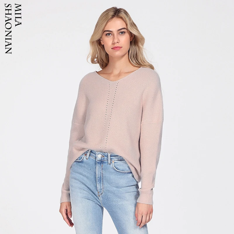 . (46% Rabatt) Günstige Kaufen Herbst Casual Pullover Pullover Frauen aushöhlen Lose V ausschnitt Top Langen Ärmeln Solide Gestrickte Baumwolle Büro Damen Weichen Pullover Preise Online.