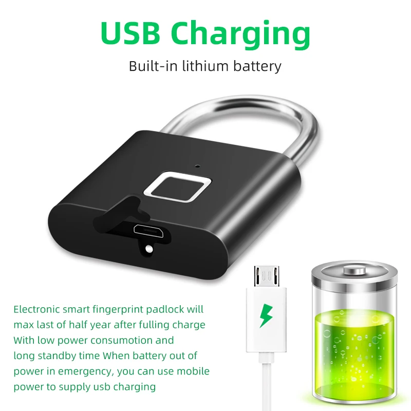 . (50% Rabatt) Billige Kaufen Thumbprint Tür Vorhängeschlösser Wiederaufladbare Türschloss Fingerprint Smart Vorhängeschloss Schnell Entsperren Keyless USB Preise Online.