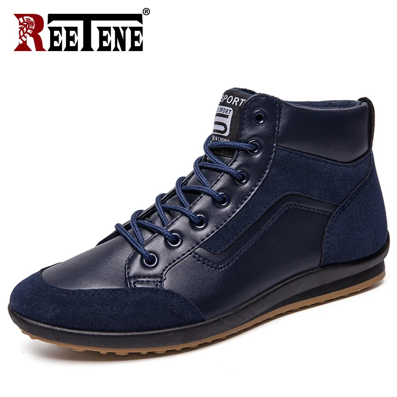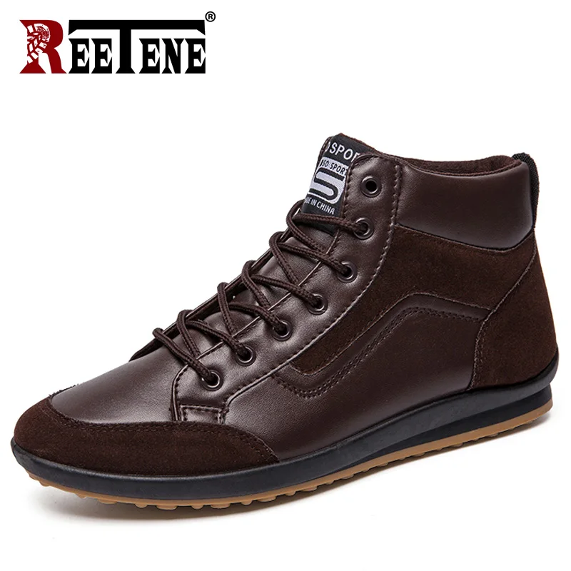 Special Offer REETENE 2019 Neue Männer Leder Stiefel Mode Herbst Winter Warme Baumwolle Männer Stiefeletten Lace Up Männer Schuhe Schuhe Männer casual Schuhe Discount 78% Today!