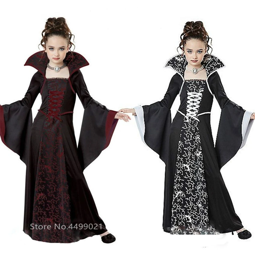 . (39% Rabatt) Kaufen Billig Kinder Vampire Cosplay Halloween Kleid für Mädchen Hexe Vintage Scary Kostüm Leistung Karneval Party Medieval Tag der Toten Preise Online.