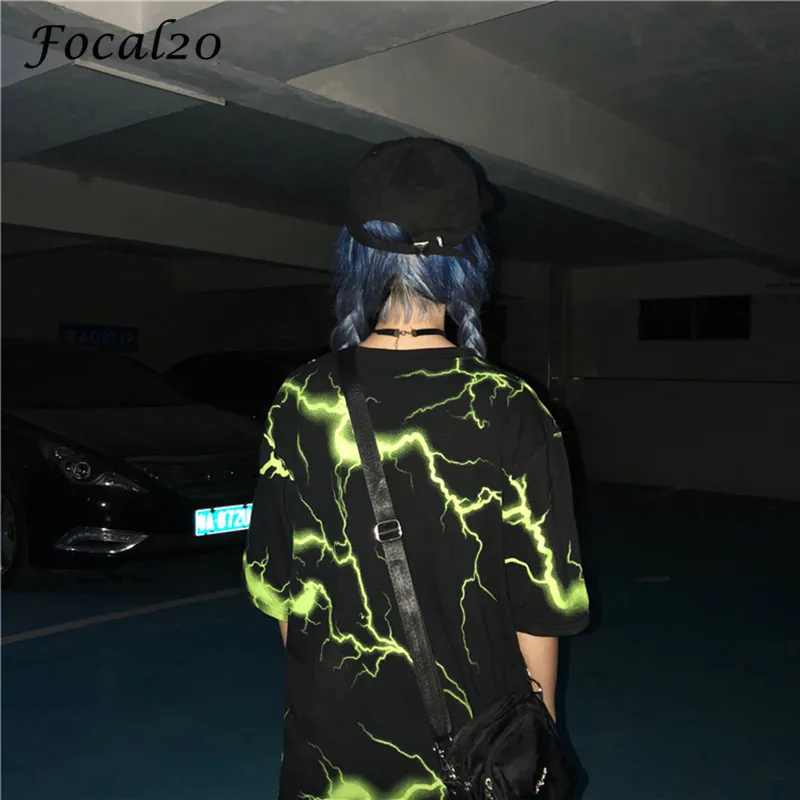 . (43% Rabatt) Billige Kaufen Focal20 Streetwear Frauen Blitz Brief Drucken T shirt Kurzarm Oansatz Sommer Beiläufige Lose T Shirt T Top Preise Online.